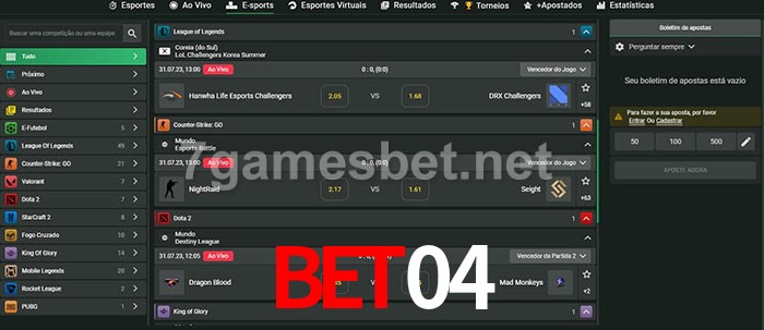 O bet04 oferece uma grande seleção de opções de apostas em e-sports com probabilidades competitivas